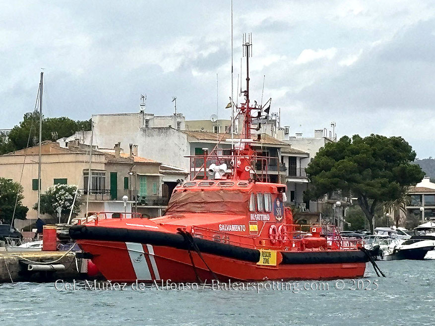 La SALVAMAR MIMOSA en su atraque habitual de Porto Colom, lunes 29 de julio 2025.
