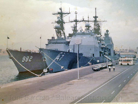 El CG-56 SAN JACINTO entre el DDG-6 BARNEY y el CG-48 YORKTOWN. Se aprecia que el CG-48 todavía esta dotado del lanzador doble Mk.26 mientras el San Jacinto ya utiliza el lanzador vertical VLS-41.